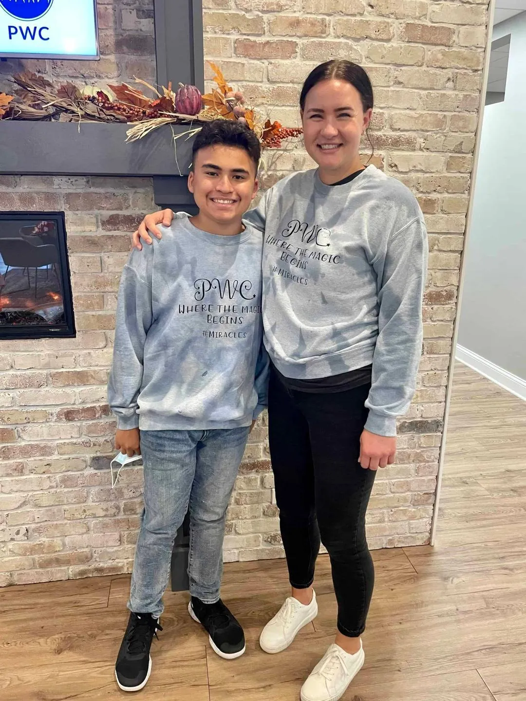 One day, in our adjusting rooms we found this written on the white board: “PWC. Where the magic begins #miracles” That tagline is now imprinted on sweatshirts because the coolest 13 year old we know is the one who created it! Meet JJ!